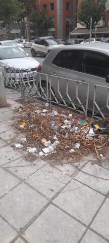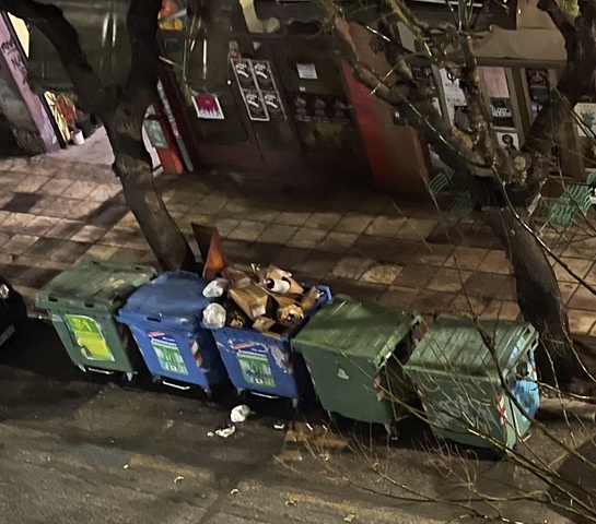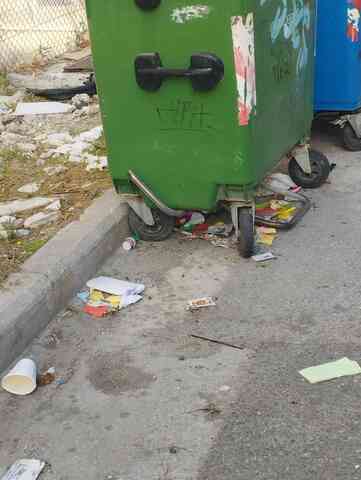 Διπλά από καδους πεταμένα πολλά σκουπιδια. Δεν σκουπιζουν